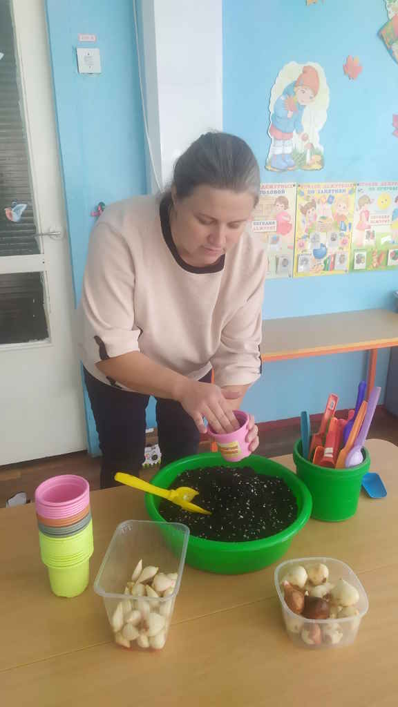 В рамках взаимодействия с родителями сегодня в группе "Почемучка " мама воспитанницы Жени В. показала детям мастер - класс по посадке тюльпанов. Мама рассказала какие ещё цветы рассаживают луковицами, показала как правильно это делать. Дети выбирали горшочки, рассматривали луковицу и сажали их в землю. У каждого ребёнка свой именной горшочек.