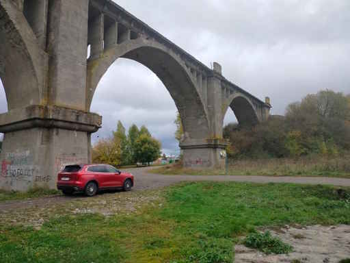 Участников экскурсии впечатлила история строительства данного моста, которая велась с 1914 по 1918 годы. Стройкой руководил немецкий инженер Гехард Шумахер. Где-то в сети, попадалось упоминание, что якобы при проведении испытаний под мостом стоял он сам. В годы Великой Отечественной войны мост был стратегически важным объектом — по нему шли составы с боеприпасами. Виадук успешно функционировал по своему прямому назначению до 1986 года.